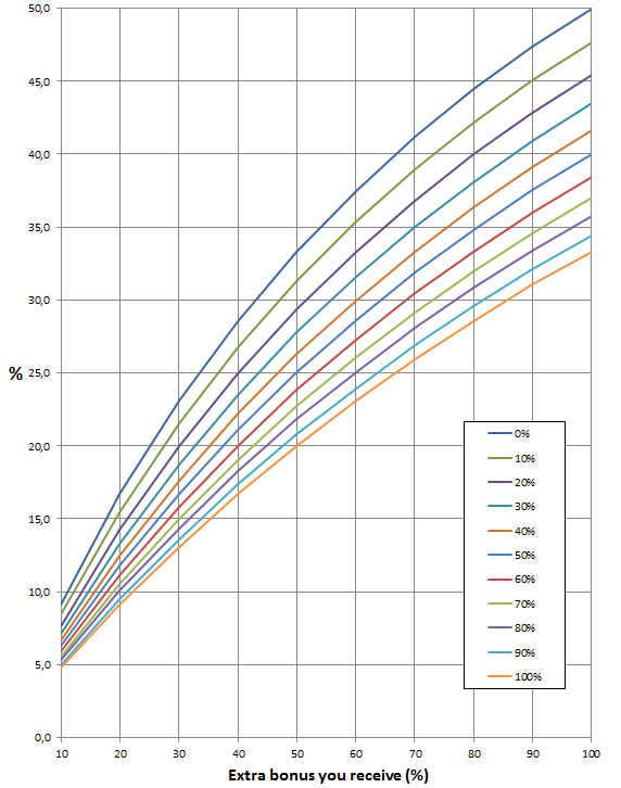 Now for your convenience, I have graphed the bonuses (in percents) you will get, against other bonuses already in play.