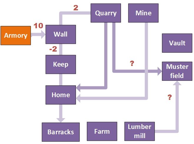 To complete this little series, I adapted the “training Tier 4” chart to give a complete overview of the dependencies when runecrafting your city buildings. As I haven’t runecrafted my own Musterfield yet, I am not sure how the dependencies will change, but for level *1, requirements are equal. Note that the Armory is a requirement for runecrafting your City Wall, but that the Armory itself cannot be runecrafted.