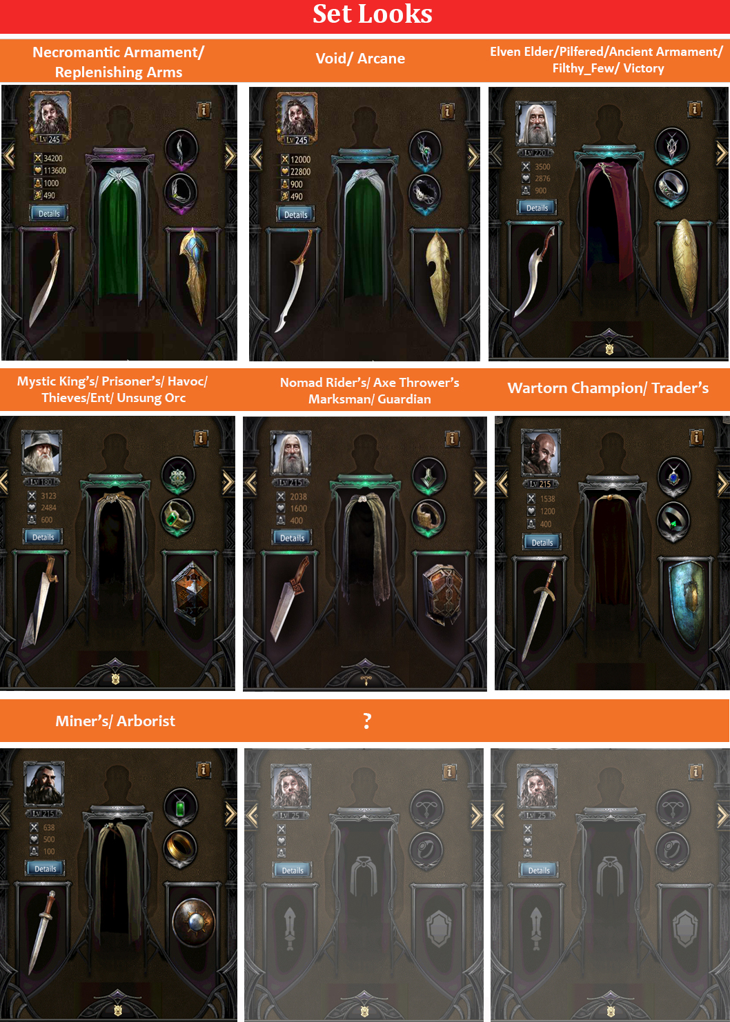 Below are newer sets that were introduced with or after the introduction of upgrading gear and unlockable bonus attributes. While the older sets above were usually based on a blueprint set like Pilfered or Prisoner’s, the newly introduced sets vary much more in their base defense and attack bonuses, making it more difficult to group them together. That said, the sets in general do range from very average to absolutely elite, and sport more varied, higher level bonus attributes in some cases.