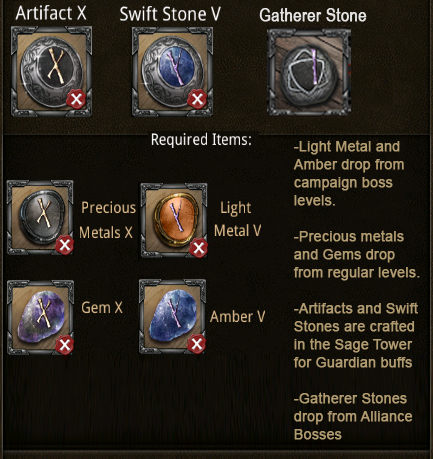 Artifact, Precious/Light Metal, Swift Stone, Gem, Amber, Gatherer Stone