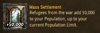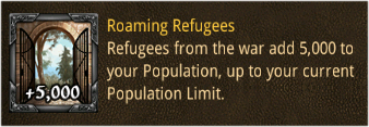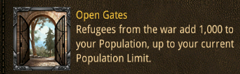 2. I got a new item today that isn’t listed here yet: Roaming Refugees. It is basically the same as Open Gates, but it adds 5000 to your population instead of 1000.