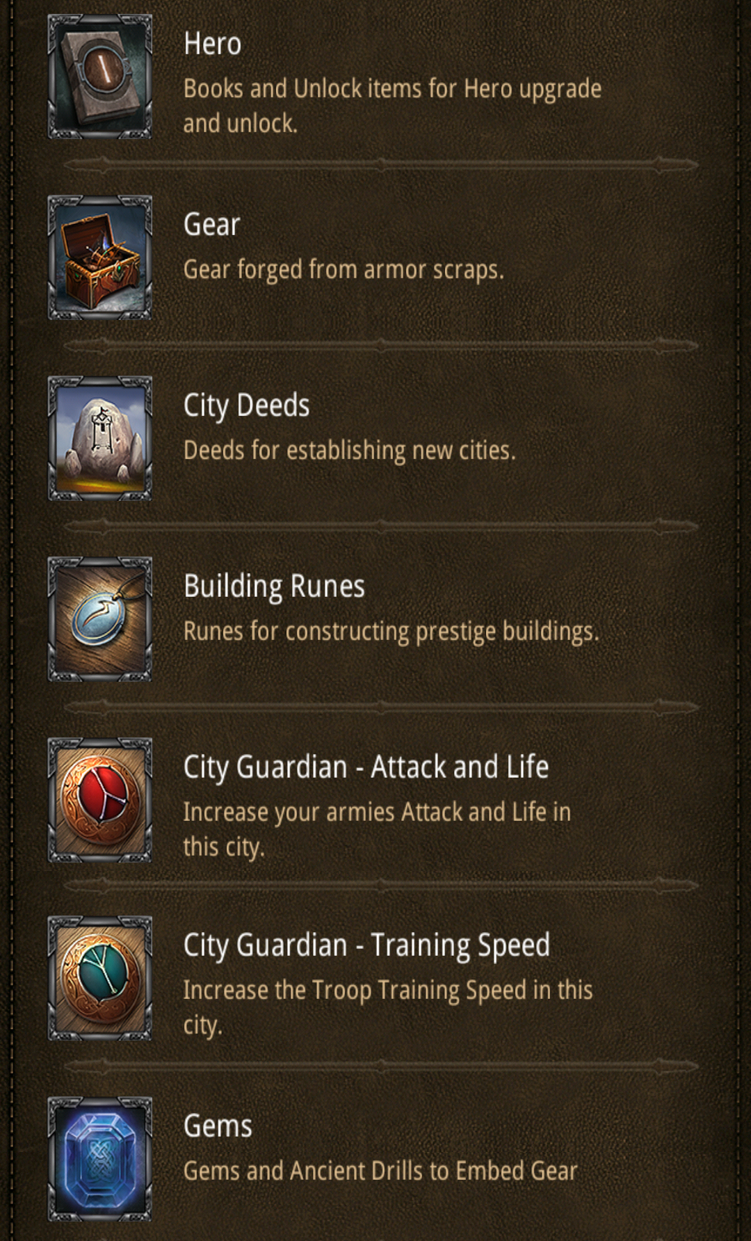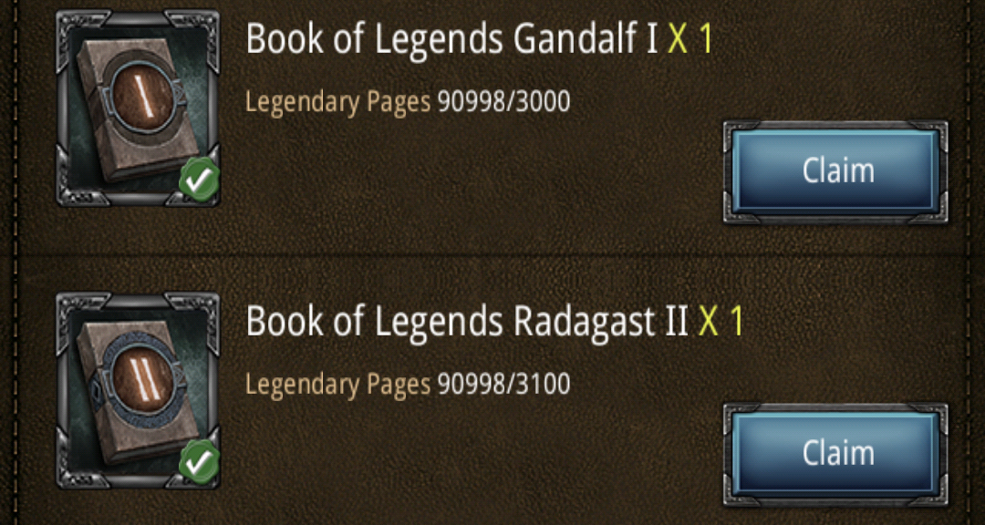 Under the Hero category you can find Books of Legends and unlocks for Tauriel and Beorn in city 4. The Books of Legend have a certain level and are able to upgrade certain Heroes if they are of the right level. Legendary Heroes can march with additional Tactical Troops in your attacks.