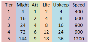 The updated spreadsheet now contains all the available troops, including the Tactical Troops, has boxes for additional information, better layout, and more useful information about the battle outcomes, such as absolute and relative tk/might ratios and a t1 equivalence calculation. This spreadsheet is handy to keep track of past battle performances without filling up your mailbox, and is great for analyzing why you got a certain ratio in a particular battle.